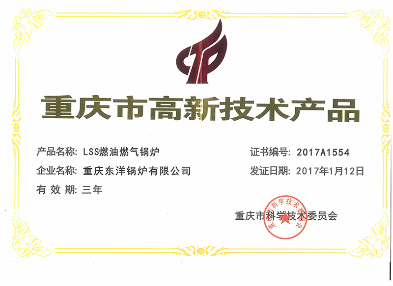 LSSS型燃油燃?xì)庳灹魇秸羝仩t高新技術(shù)產(chǎn)品證書