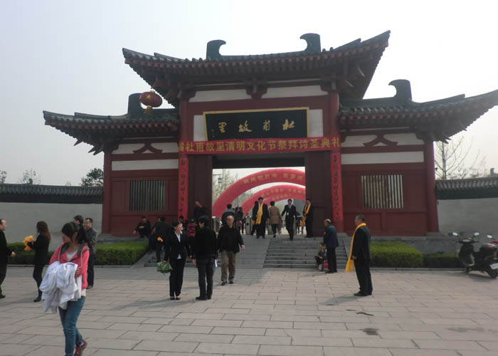 2013年4月3日,上午10時(shí),莊嚴(yán)肅立的祭祀隊(duì)伍在杜甫故里靜靜佇立,在主持人的引領(lǐng)下,主祭人緩緩步入祭祀主會(huì)場。在行過凈手之后,首屆杜甫故里清明祭拜“詩圣杜甫活動(dòng)由此拉開序幕。主祭人神情肅穆,儀態(tài)莊重的分別完成了凈手、奠帛、誦讀祭文等環(huán)節(jié),童聲誦讀的祭文,余音裊裊,猶如天籟,磬入心脾;隨后,朝圣隊(duì)伍和各界群眾在音樂的伴奏下向詩人堂三鞠躬,以此告慰詩人在天,整個(gè)祭祀活動(dòng)達(dá)到了高潮。這一刻,種種情愫穿越時(shí)空,華夏子孫與我們自己的精神大師心照神交,我們心有所依,情有所傍,文化傳承的責(zé)任與擔(dān)當(dāng)永世不忘。